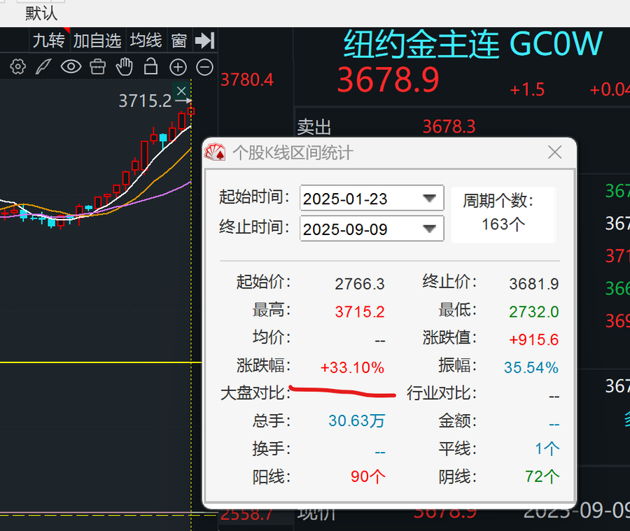 我们不说任何一只黄金个股的涨幅,因为那有偶然性。我们就说最公平的参照物——纽约金期货。